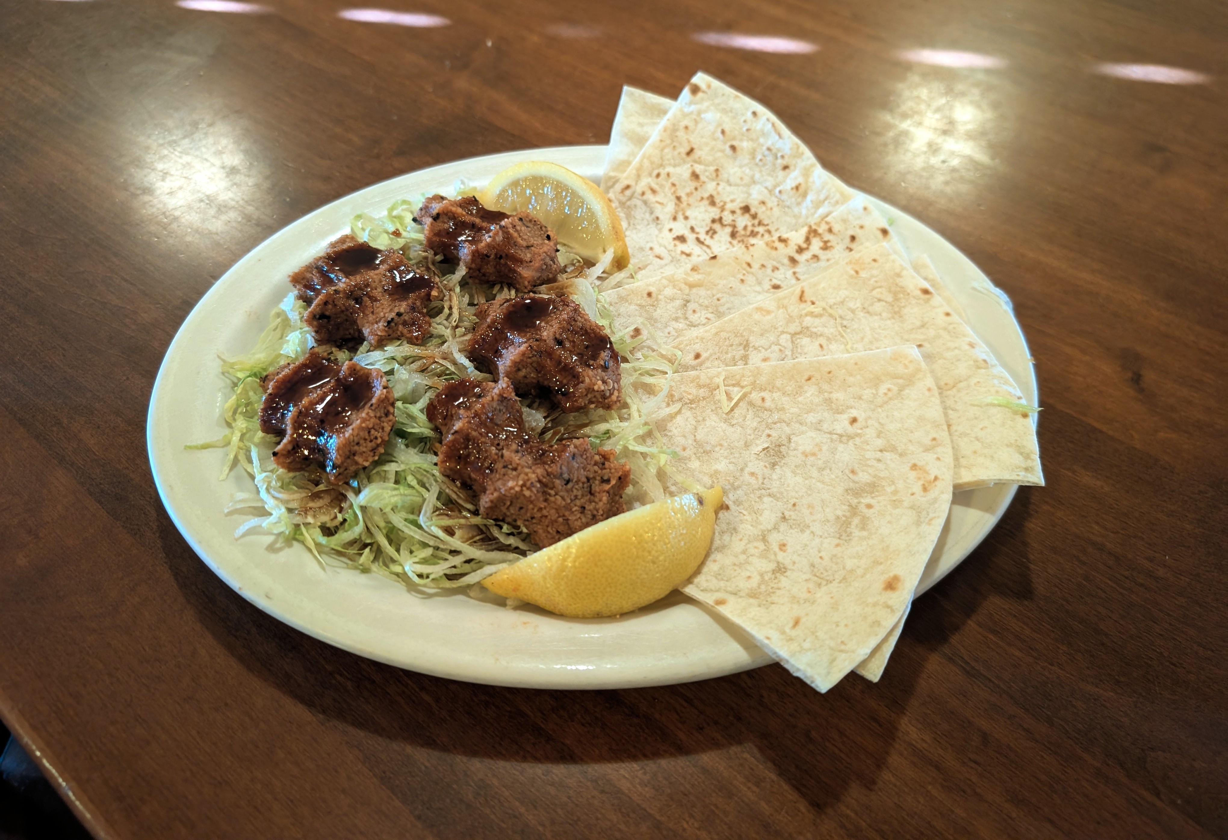 an appetizer kofte dish that is a regional specialty of Turkey. spicy, intensely flavored, and super delicious! made with bulgur, onion, tomato paste, hot red pepper paste, and more! topped with pomegranate molasses and served with lemon wedge