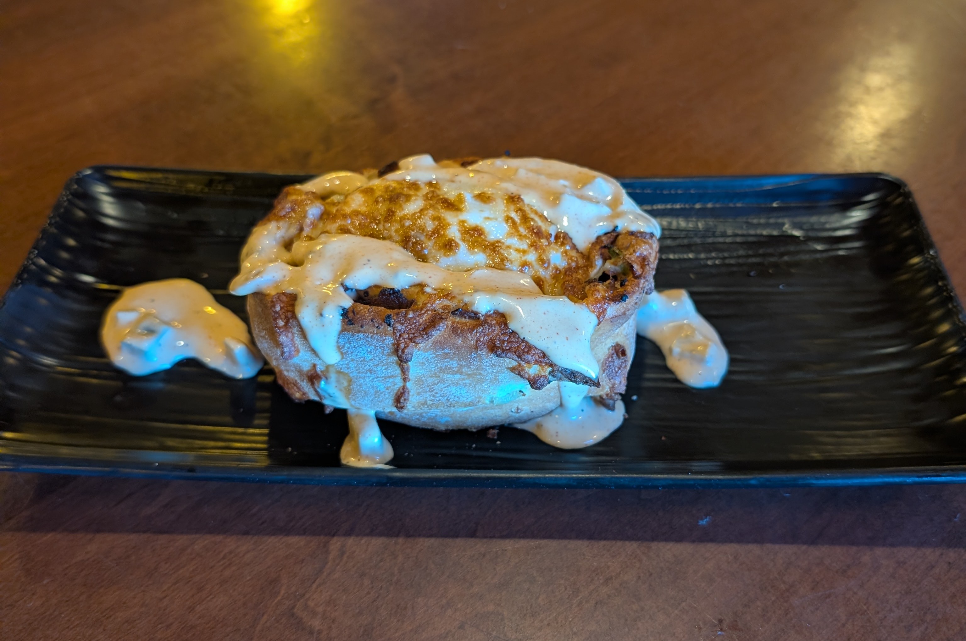 pizza dough rolled up like a pinwheel filled with meat, cheese, onions and peppers then topped with rob's scratch made philly sauce. your choice of chicken or cheesesteak